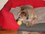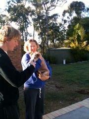 Puppies have small bladder’s and so will need to relieve themselves every hour or so and after sleep. Take them to the designated toilet spot regularly, praise and reward when the pup eliminates. Wilbur now eliminates on command because Debbie and us instilled this behaviour pattern clearly on him.